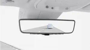 The digital rearview mirror is a rear-vision system that uses a rearward-facing camera to capture video that is linked to an integrated mirror display, providing the driver with an unobstructed, wide-view image behind the vehicle. All controls are discretely integrated into the rearview mirror, which has two modes. In mirror mode, the product functions as a standard auto-dimming rearview mirror. With the simple switch of a lever, the mirror enters camera mode, and a clear, bright video image appears through the mirrors reflective surface, providing a wide, unobstructed rearward view. THe MIrror also features HomeLink. The digital interior rear view mirror makes your driving more comfortable in the dark by controlling reflection from flashing or strong light from vehicles behind you.